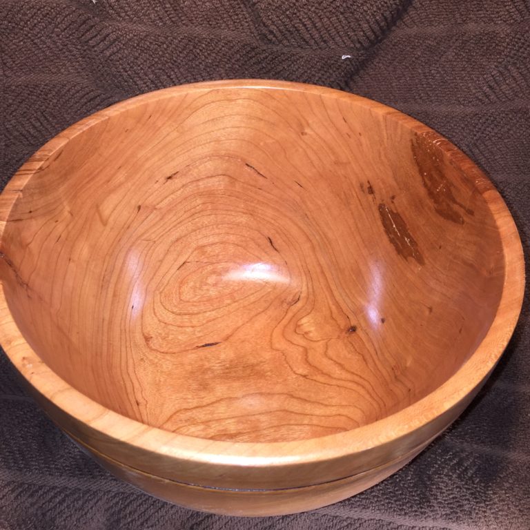 Tall Cherry Bowl #2 May 27, 2016Full resolution (2448 × 2448) ← Previous Next → I love the grain that cherry has. For this particular piece of wood, it had started to break down, which is where the dark coloration comes from on the end-grain part of the bowl.