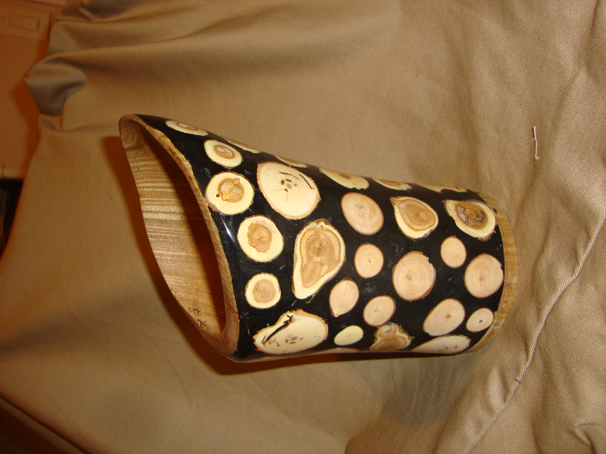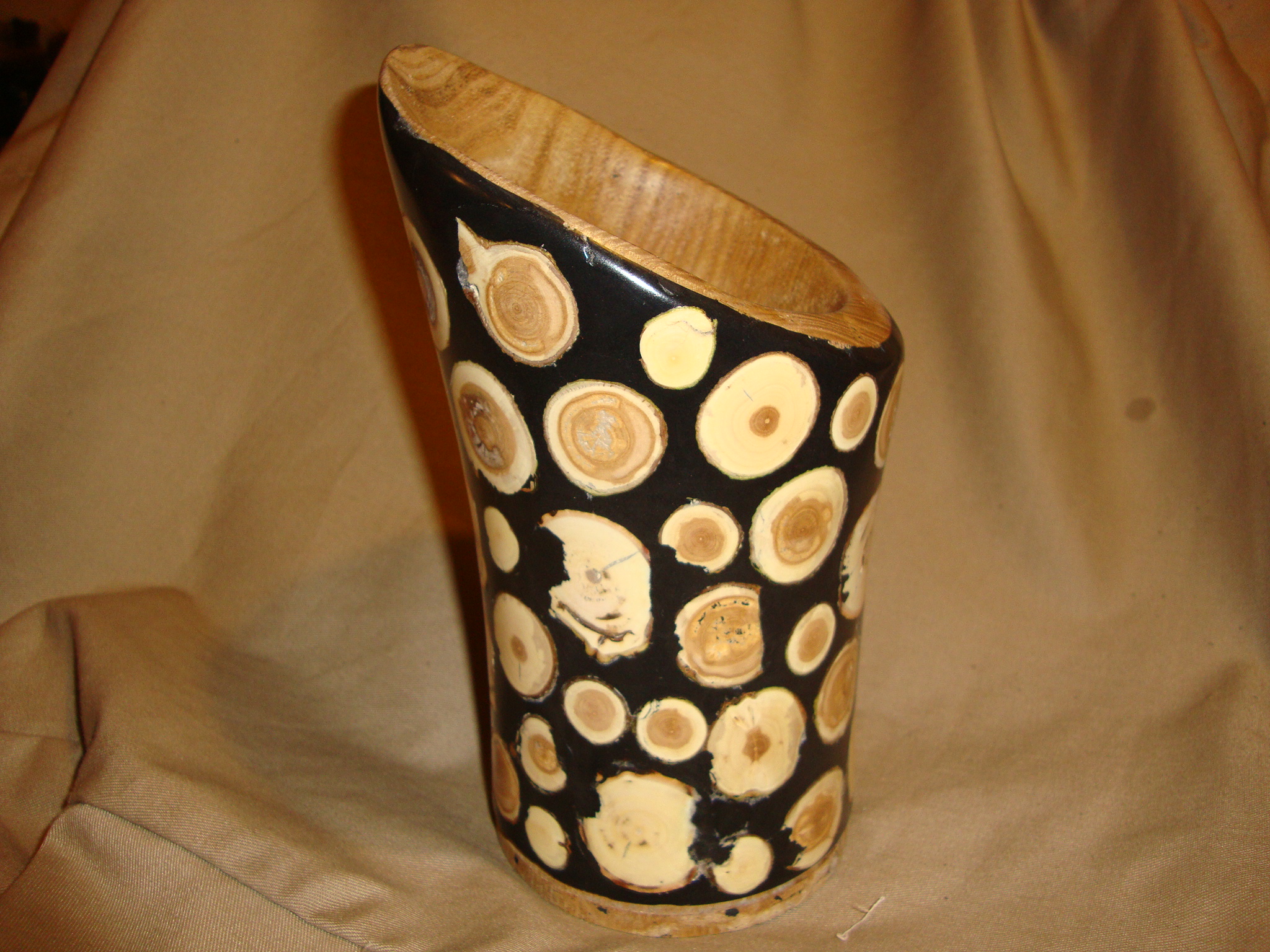 Back in February, I made a vase out of an oddly shaped piece of white oak and posted it on the blog. I liked it and had plans to give it away to a co-worker in Atlanta, but every time I looked at it, I thought, “come on, Mark, you can do better than that”! So I sat it where I’d have to look at it each day and waited for some inspiration to hit me as I walked by. It took a couple of months, but it finally dawned on me that while I liked the form of the vase, the wood grain was just too plain. Simple. There wasn’t anything to really make a person want to look at it, let alone make them want to look at it for more than a passing glance.