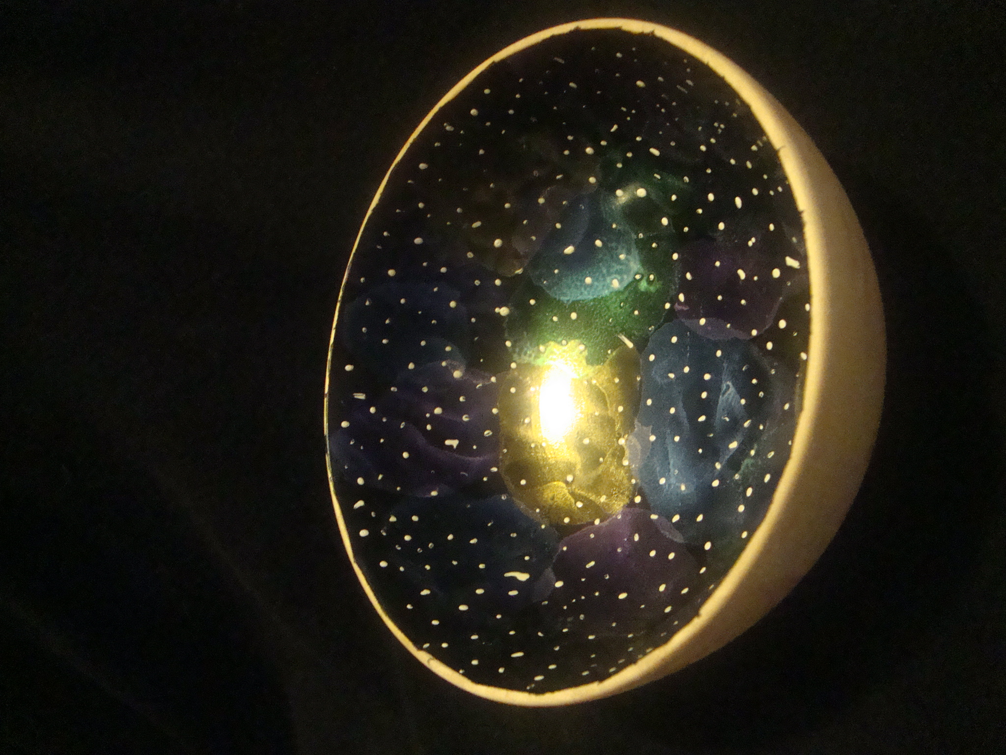 I decided to play around with the iridescent paint again, only this time see if straight acrylic paint would show through the colors. Since the coloring technique is called “cosmic cloud”, I figured why not try to make a nebula inside the bowl? Gotta say, this one turned out WAY better than I ever expected.