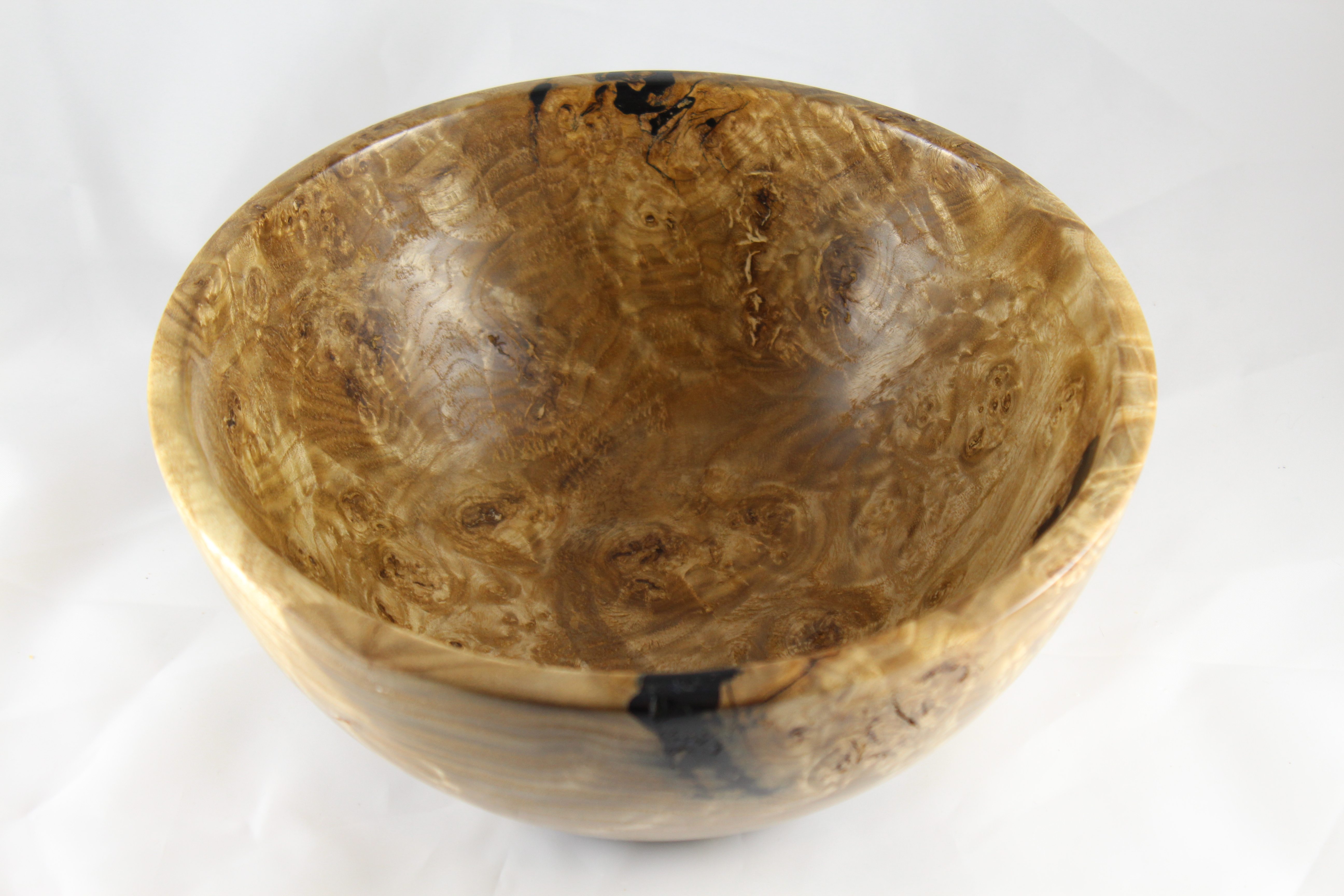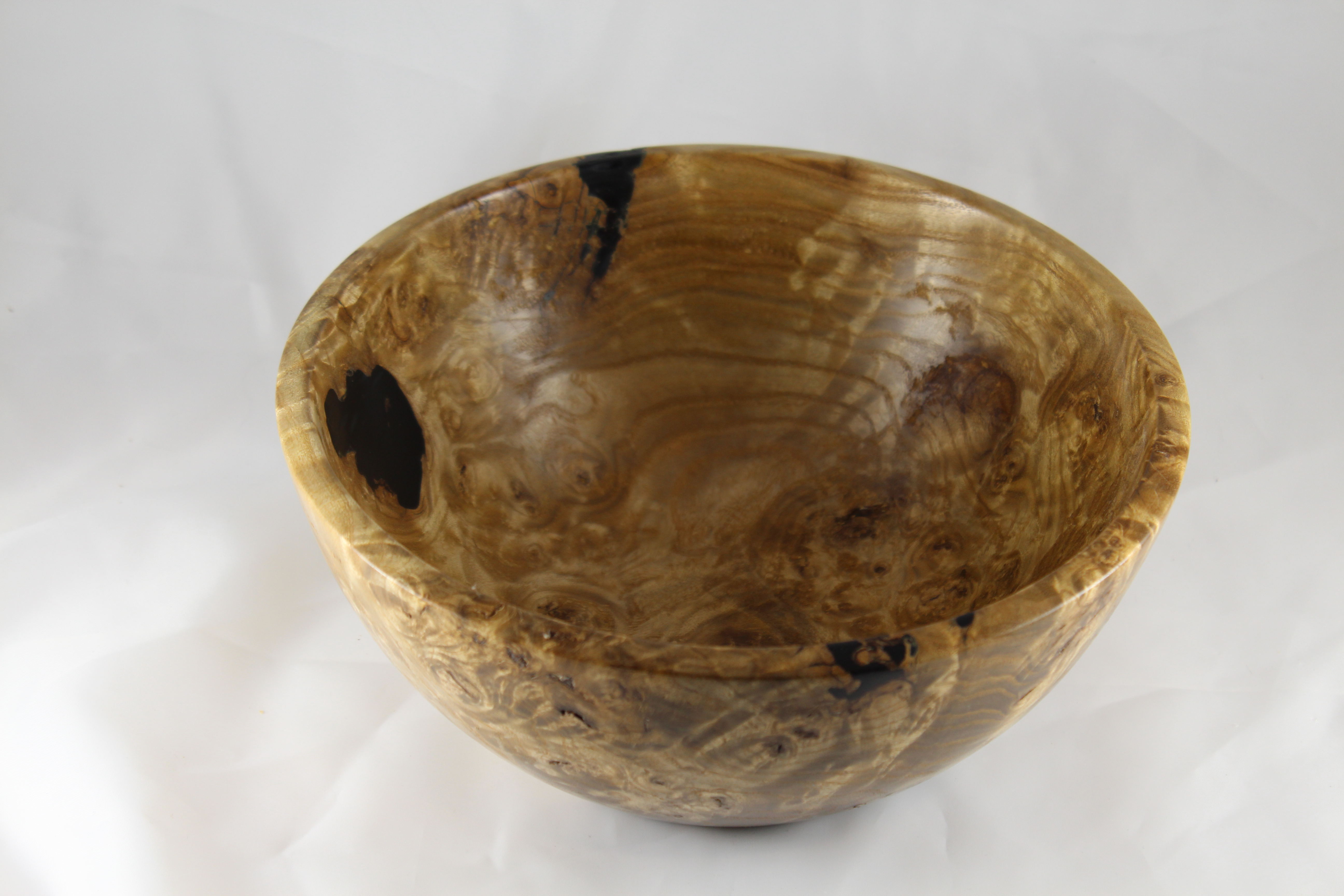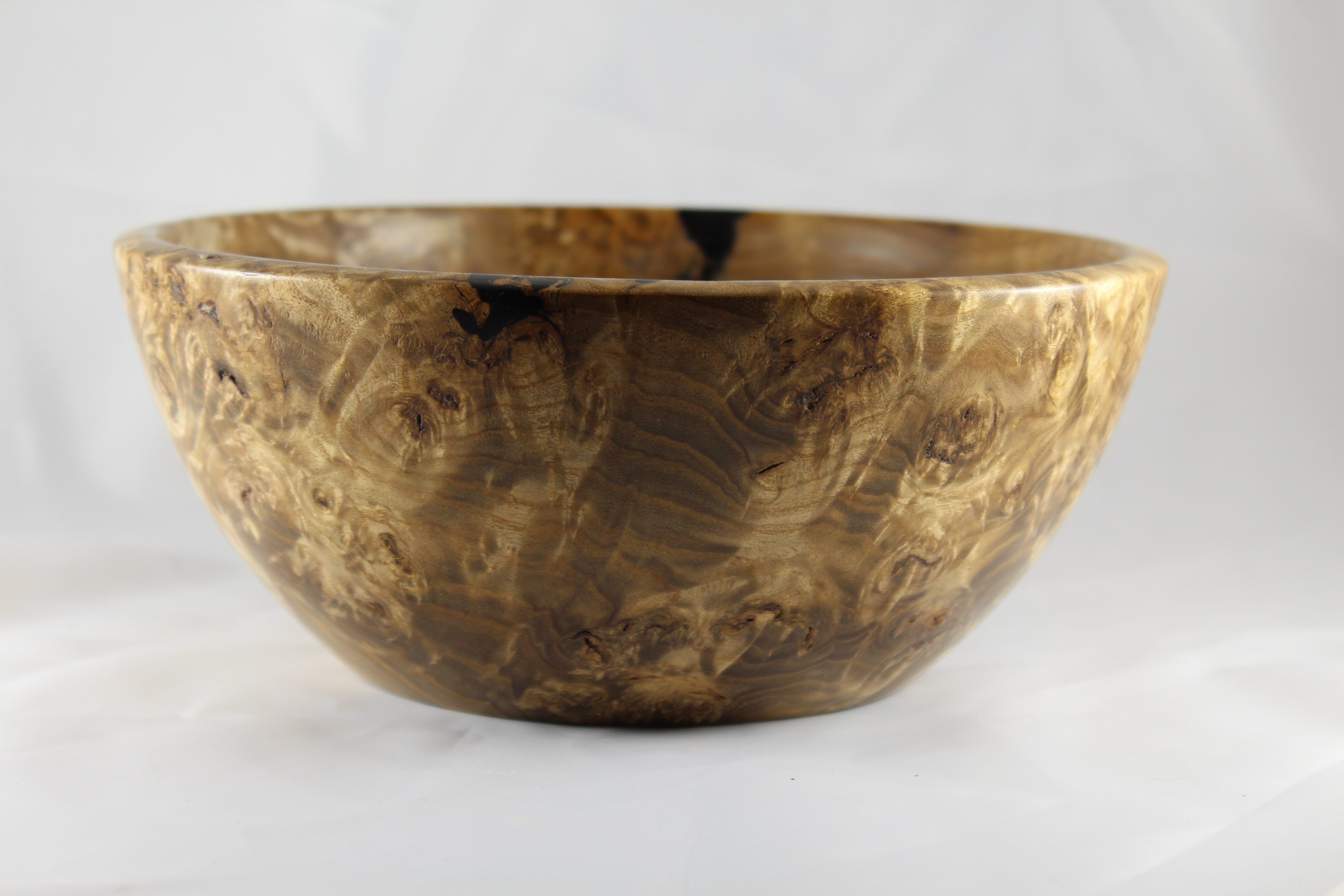 Here’s what I came up with and all I can say is WOW!!! This is easily the prettiest thing I’ve turned in quite some time. After sanding this thing up to 20,000 grit, it’s got a coat of Yorkshire Grit (which is an abrasive paste wax) followed by a harder wax product called Renaissance Wax (which is a petroleum based wax). I like everything about this, from the unpredictable grain, to the epoxy fillers, to the feel of the finish. Now, I need to go dig back through the garage and the shop, cause I’m pretty sure there’s another piece like this, somewhere…