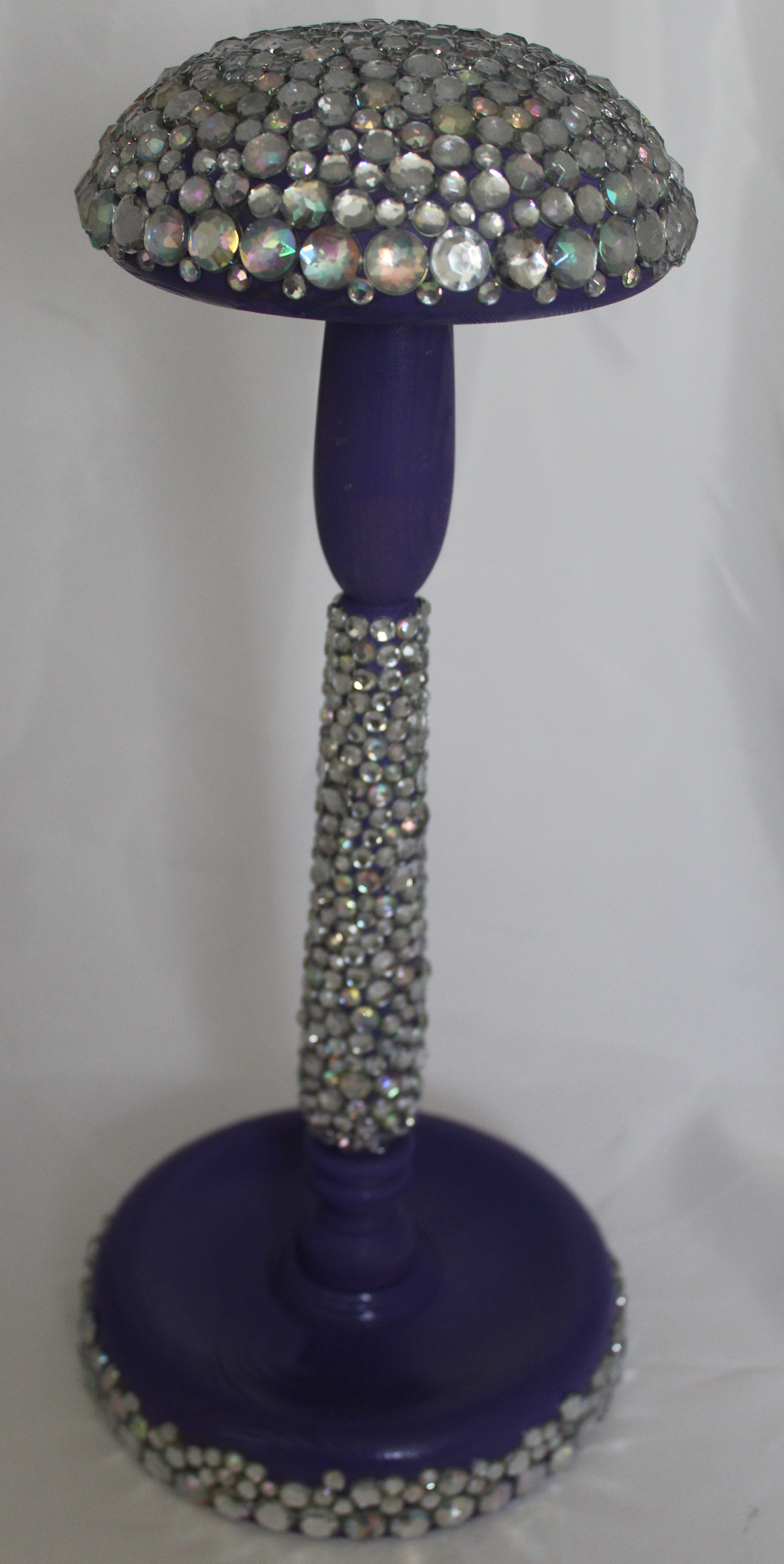 For this one, if Liberace (anyone under 50 may need to google him to understand) ever needed a wig stand, this one would certainly be in the running. After having to glue every one of those rhinestones on individually, it is not likely to EVER do another one of these!