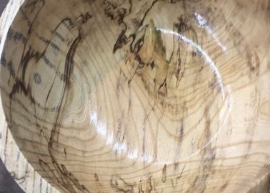 This is a view of the bowl from the top. Note how the spalting goes completely through the finished bowl. The bark inclusion can also be seen.