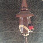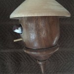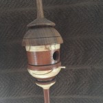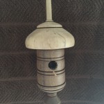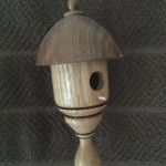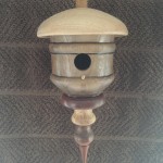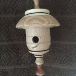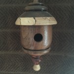 Miniature bird houses are great little projects! Most are made with wood scraps laying around the shop and they don’t take all that much time to create. The designs are nearly endless for what you can make. I’ve given many of these away as little gifts, but have kept quite few to hang across the mantle in the breakfast nook in our house. My daughters sold a collection of these at a craft fair to raise money for a college trip to Europe and I was amazed at how many people bought them because of the color of the little bird that was added to the turning. Go figure…